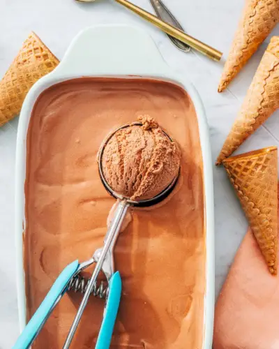 ¿Quieres el mejor helado? ¡Prueba esta receta casera de helado de chocolate! Es irresistiblemente cremoso, con un rico sabor a chocolate que hace que sea difícil no dar otro bocado. ¡Con solo 7 ingredientes, también es fácil de preparar en casa!