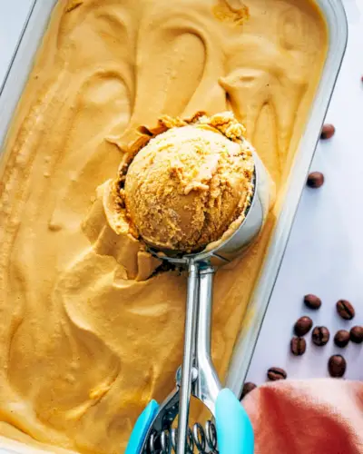 ¡Llamando a todos los amantes del café! Aquí tienes la receta de helado: ¡esta receta casera de helado de café! Imagínese: un postre helado deliciosamente cremoso, perfumado con un rico y agridulce espresso. ¡Cada cucharada te hará derretir un poco por dentro! Combínalo con chocolate picado o salsa de chocolate para obtener el postre sencillo ideal, o incluso puedes agregar complementos de tu elección.