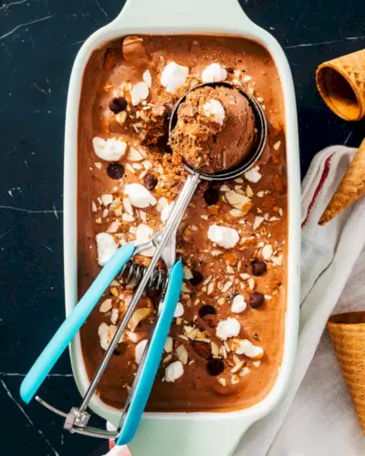 Si eres fanático de las mezclas de helados, ¡no hay nada mejor que el clásico Rocky Road Ice Cream! Este sabor de helado tiene casi un siglo y sigue siendo tan popular como siempre. La base cremosa de chocolate contiene trozos de nueces tostadas y malvaviscos, creando contrastes de textura y sabor irresistibles. Hazlo casero y también puedes agregarle trozos de chocolate (¡¿por qué no?!).