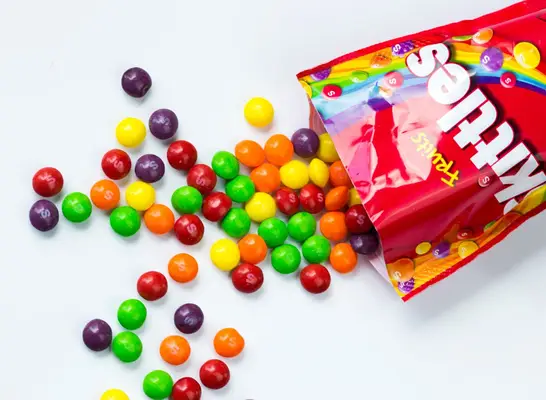 Ya sea que coma Skittles para un regalo nostálgico o entregue una bolsa a sus hijos de vez en cuando, está consumiendo algunos aditivos que están prohibidos en varios países en el extranjero. Los Skittles contienen amarillo 5 y amarillo 6, los cuales son tintes de alimentos artificiales que potencialmente tienen efectos secundarios negativos. Algunos estudios encontraron una relación positiva entre el amarillo 5 y hiperactividad en niños , mientras que los estudios de rata de amarillo 6 encontraron posibles conexiones con tumores testiculares y suprarrenales .