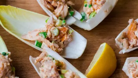 Crédito de la foto: www.abeautifulplate.com¡Rellena estos crujientes escarolas con una sencilla y cremosa salsa de trucha ahumada! Un aperitivo elegante y fácil para cualquier época del año.